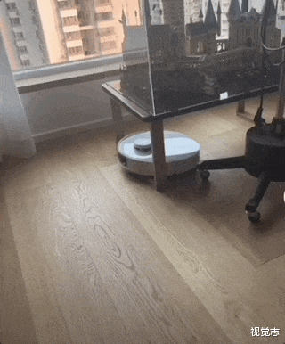 看了家里监控才知道,趁着没人,家里扫地机器人跟桌腿干了一架。