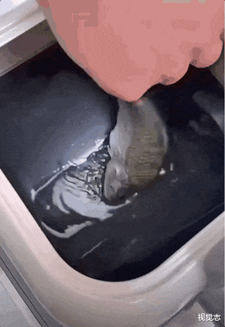 打开煎鱼模式,整条鱼放进去,开始有节奏地搅拌。
