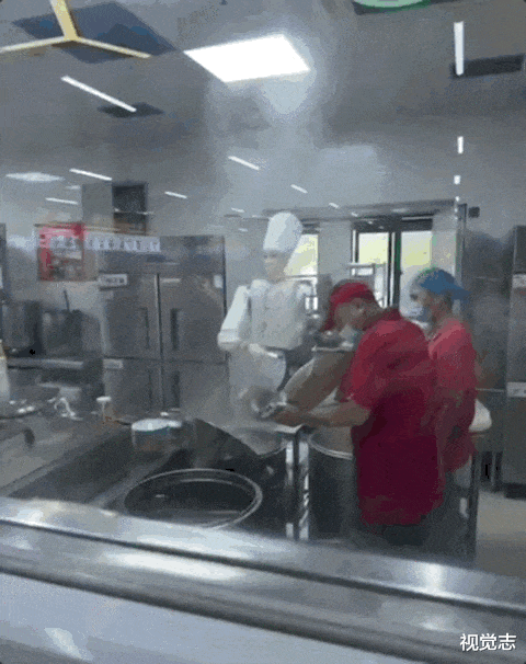 单位食堂斥巨资买了自动打菜机器人,放入新鲜的食材,咣当咣当一顿操作,出菜的瞬间,机器人和员工一起yue了。