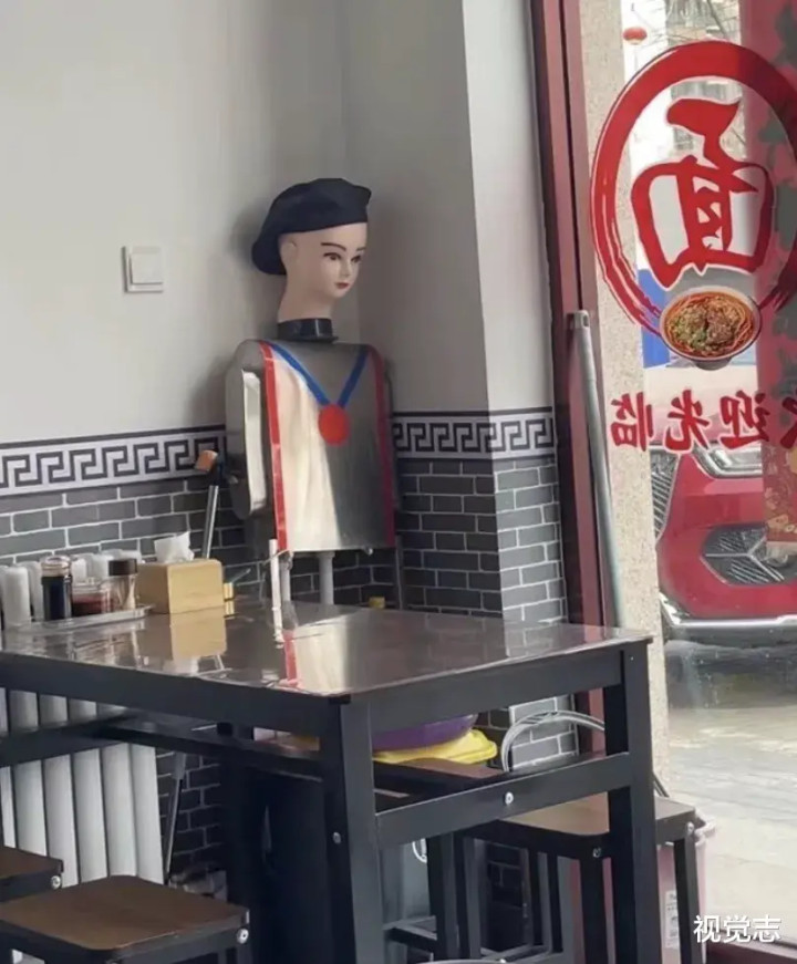 但有些老板,坚决不惯着“削面师傅”,活干不好,直接爆改门卫,放到店门口站岗。