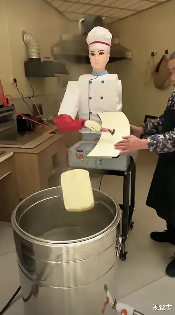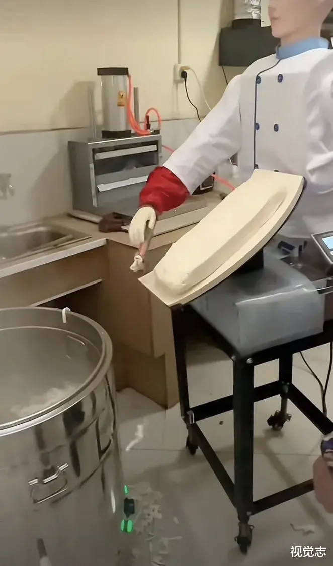 还有的削面机器人,削得到处都是,就是不往锅里削。