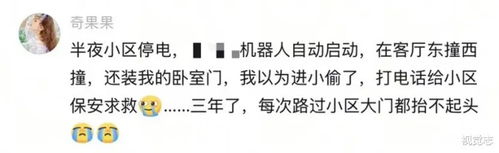 小区半夜停电,扫地机器人自动启动,冲着卧室门横冲直撞,网友以为家里进了贼,吓到报警。