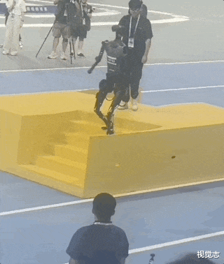机器人达人秀,还没秀起来,绊了一下,直接给哥们头干掉了。